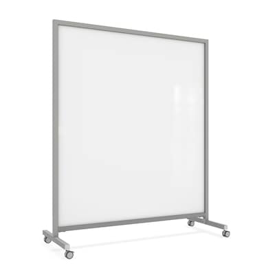 Ghent EZ Magnetic Glass Mobile Dry-Erase Whiteboard, Aluminum Frame, 75"H x 62"W, White (EZ1MA7562WH)