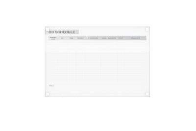Ghent's graphic glassboards are visually enhanced to encourage communication and collaboration. Ghent's OR schedule board helps keep track of surgeries and patient details for your operating room. There is plenty of room to dry-erase write in each patient's procedures details. The graphics on our erasable boards improve communication and reduce anxiety for patients and employees. The entire surface easily wipes off with a soft cloth, disinfectant wipe, alcohol or water. Ghent's graphic glassboards are resistant to bacteria and germs, which helps with infection prevention. Graphics are produced in gray to seamlessly match any interior and will never stain, ghost or fade.