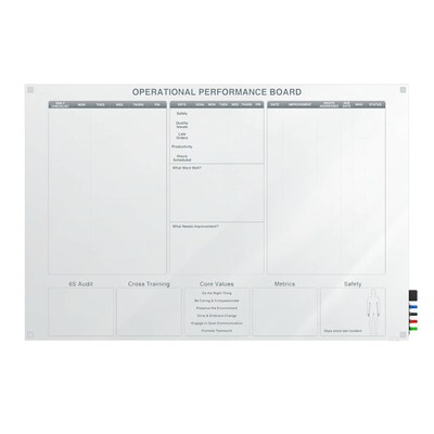 The Harmony glassboard tracker with standoffs is versatile in satisfying progression needs, organization, and deadlines in the workplace. Ghent’s improvement tracker glassboard is a tool to provide communication between employees and managers, with graphics specifically designed to increase productivity and efficiency.