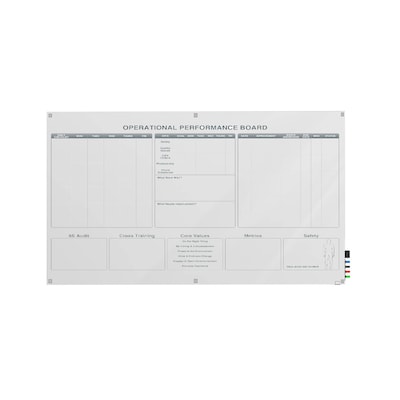 Ghent’s Operation Performance Glassboards are purposefully built to encourage and foster discourse, teamwork, and quick analysis. The Harmony glassboard tracker with standoffs is versatile in satisfying progression needs, organization, and deadlines in the workplace. Ghent’s improvement tracker glassboard is a tool to provide communication between employees and managers, with graphics specifically designed to increase productivity and efficiency.