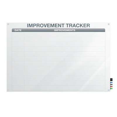Ghent Manufacturing Harmony Glassboard w/ Standoffs, Round Corners, Improvement Tracker 1, Magnetic, 3'H x 4'W (GRPHMYRM02V-34)