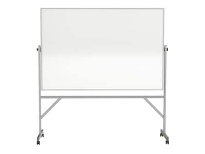 Communicate better in meetings and lectures by using this reversible whiteboard. Its porcelain surface resists scratches and stains for durability, and the reversible design doubles the usable writing surface. This Ghent magnetic whiteboard is mounted on sturdy casters for easy portability, and it locks into position for stability during use.