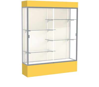 Ghent Spirit 60"W x 80"H x 16"D Lighted Floor Case, Plaque Back, Satin Finish, Goldenrod Base and Top (3175PB-SN-GR)