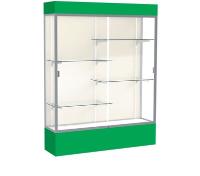 Ghent Spirit 60"W x 80"H x 16"D Lighted Floor Case, Plaque Back, Satin Finish, Kelly Green Base and Top (3175PB-SN-KG)