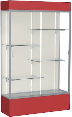 Ghent Spirit Lighted Floor Case, 48"W x 80"H x 16"D, Plaque Back, Satin Finish, Red Base and Top (3174PB-SN-RD)