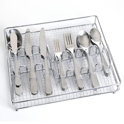 Gibson Home 109532.46 Hammered Stainless Steel 46-Piece Flatware Set with Wire Caddy