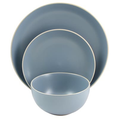 Beautify your dining table with the Rockaway 12-Piece Dinnerware Set by Gibson Home. This modern set is made out of stoneware for long-lasting durability. It features a matte finish on top of a blue gray color and timeless round shapes making it a staple for everyday use or special occasions.Includes four of each: 10.5 in. dinner plates, 4.8 in. dessert plates, 6 in. bowls.Made of durable stoneware Dishwasher safeMicrowave safe
