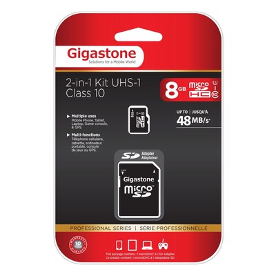 Gigastone 2-in-1 8GB SDHC Memory Card with Adapter, Class 10, UHS-I (GS-2IN1C1008G-R)