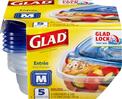 Prevent contamination of stored foods with these plastic containers. The lids seal tightly to prevent spills and protect the contents from the elements, while interlocking stacking enables you to save on storage space. With BPA-free plastic construction, these storage containers keep your food free of contaminants. Microwave-safe, heating food in these Glad Home Collection entree plastic containers is a sound option.