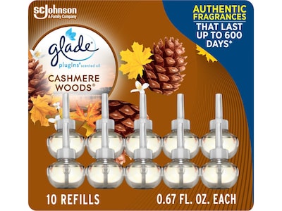Glade PlugIns Scented Oil Diffuser Refill, Cashmere Woods, 0.67 fl. oz, 10/Pack (353724)
