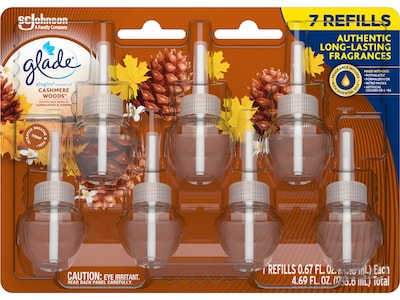 Glade PlugIns Scented Oil Refill, Cashmere Woods, 0.67 fl. oz., 7/Pack, 96 Packs/Carton (350769CT)