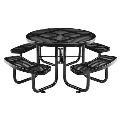 Global Industrial 46" Round Outdoor Steel Picnic Table, Perforated Metal, Black (262078BK)