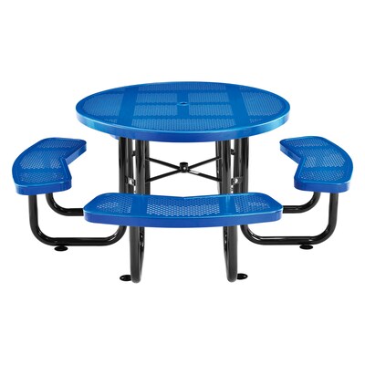 Global Industrial 46" Round Outdoor Steel Picnic Table, Perforated Metal, Blue (262078BL)