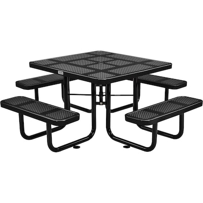 Global Industrial 46" Square Outdoor Steel Picnic Table, Perforated Metal, Black (694551BK)