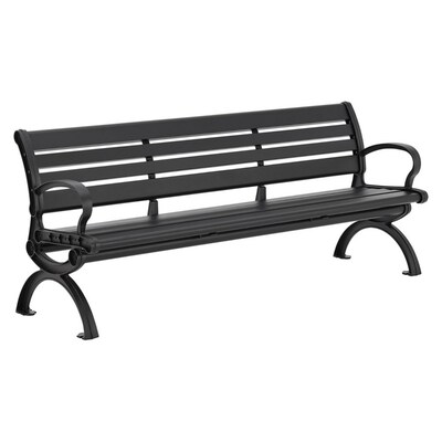 Designed with a curved backrest & armrests for maximum comfort, the black Global Industrial 6' Aluminum Park Bench is ideal for train stations, park facilities, shopping areas, and other outdoor areas where public seating is needed. The horizontal slatted seat & backrest reduces weight without sacrificing strength, limits rain & snow accumulation, and promotes air flow to minimize perspiration. The bench is made of lightweight aluminum with a protective powder coat finish for corrosion-resistance and resilience against the elements. Pre-drilled mounting holes on integrated brackets allow the option to mount to any surface utilizing user-supplied anchors.