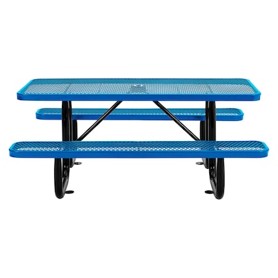 Global Industrial 6' Rectangular Outdoor Steel Picnic Table, Expanded Metal, Blue (277152BL)