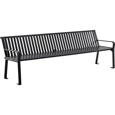 Global Industrial 8' Outdoor Bench with Back, Vertical Steel Slat, Black (694855BKKD)