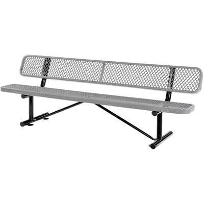 Global Industrial 8' Outdoor Steel Bench w/ Backrest, Expanded Metal, Gray (277155GY)