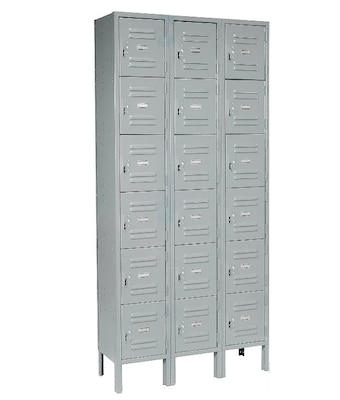 Engineered for years of dependable service, this assembled gray Global Industrial™ Capital® 6-Tier/18-Door Locker features eighteen individual 16-gauge louvered steel doors with a gray powder coat finish, 5-knuckle security hinges and friction latches & hasps. Assembled lockers are not returnable. 1-Year Limited Warranty.