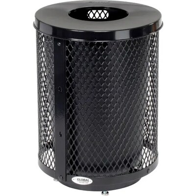Global Industrial Outdoor Diamond Steel Trash Can w/ Flat Lid & Base, 36 Gallon, Black (261924BKD)