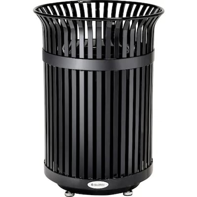 Global Industrial Outdoor Heavy-Duty Slatted Steel Trash Can, 36 Gallon, Black (641629BK)