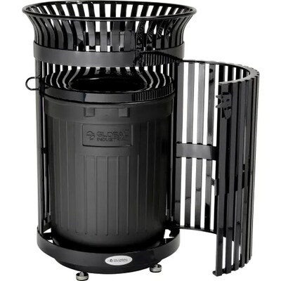 Global Industrial Outdoor Heavy-Duty Slatted Steel Trash Can w/ Door, 36 Gal., Black (641630BK)