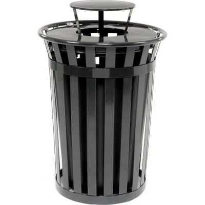 Global Industrial Outdoor Slatted Steel Trash Can w/ Rain Bonnet Lid, 36 Gallon, Black (260804BK)