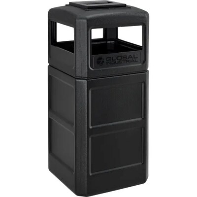 Global Industrial Square Plastic Waste Receptacle w/ Ashtray Lid, 42 Gallon, Black (641540BK)