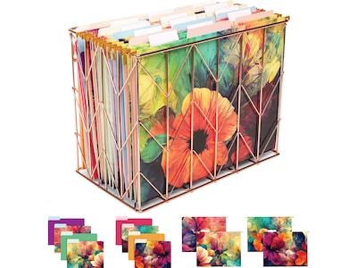 - Hanging file folders come in four Abstract Floral designs (three of each), and file folders come in Watercolor Floral designs and solid colors (three of each); made of 300gsm paper