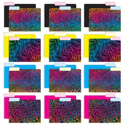 Global Printed Products Heavy Duty Interior File Folders, 1/3-Cut Tab, Letter Size, Paper Stock, Animal Print, 24/Pack