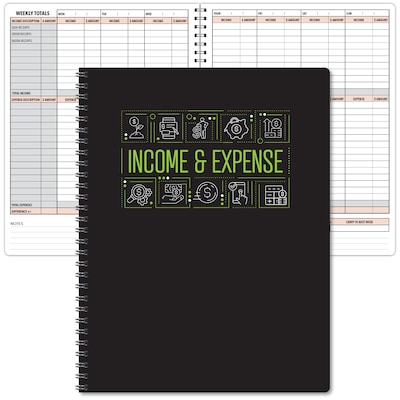 Global Printed Products Income & Expense Accounting Journal, 8.5" x 11", Black/Green, (GPP-0115)