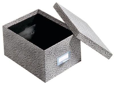 Create a searchable note card file in your office with this index card storage box. A handy label holder with blank labeling cards lets you identify the contents held within, and an adjustable follower assembly keeps cards upright for easy perusal. This Globe-Weis index card storage box features a snug-fitting lid to protect against dirt and damage.