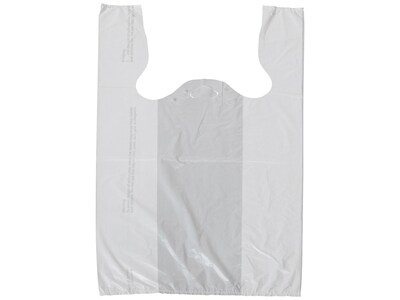 - Sturdy and affordable white T-shirt bags made of 0.6 mil high-density film