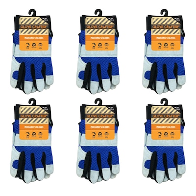 Glove Crafter Handyman's Leather Mechanic Gloves, One Size, Blue & Gray, 6/Pack, 12 Packs/Carton (13356)