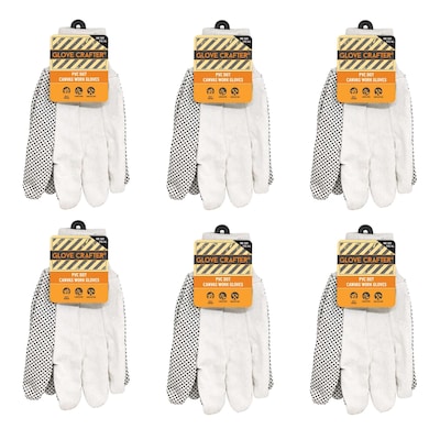 Glove Crafter Men's Canvas with PVC Dots Work Gloves, One Size, Off White, 6/Pack, 12 Packs/Carton (13062)