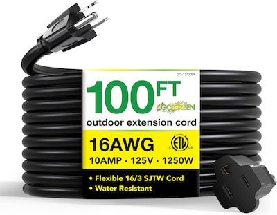 GoGreen Power 100' Indoor/Outdoor Extension Cord, 16 AWG, Black (GG-13700BK)