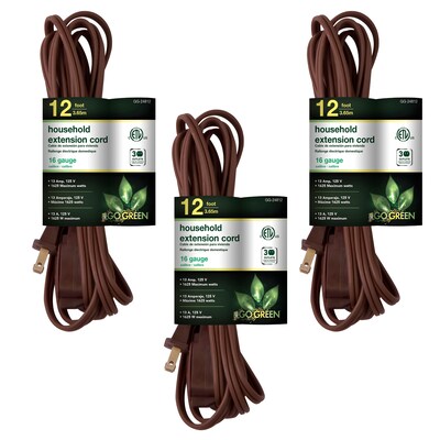 GoGreen Power 12' Extension Cord, 3-Outlet, 16 AWG, Brown (GG-24812-3)