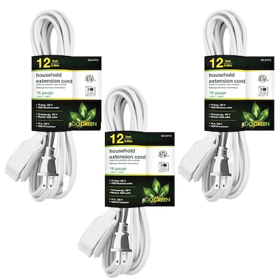 GoGreen Power 12' Extension Cord, 3-Outlet, 16 AWG, White (GG-24712-3)