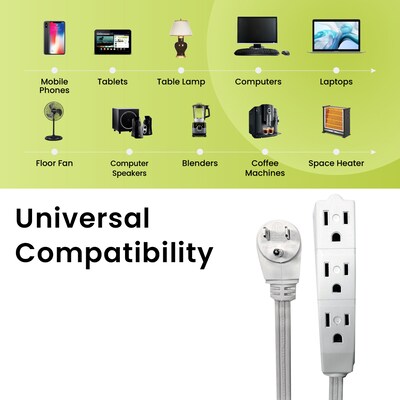 The GoGreen Power 15-foot 16/3 3-outlet extension cord is slim and reduces clutter. It quickly turns one outlet into three and is ideal for small home appliances and general household electronics.