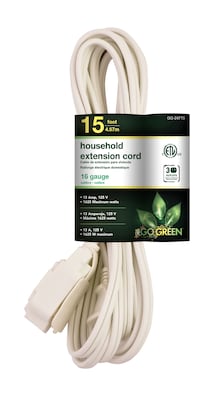 GoGreen Power 15' Extension Cord, 3-Outlet, 16 AWG, White (GG-24715-3)