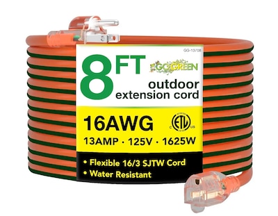 The GoGreen Power Heavy-Duty Extension Cord is ideal for multiple applications around your home's exterior and garage. It resists moisture, abrasion and exposure to sunlight. The cord is ETL listed and features a light on the end that shines when it's in use.