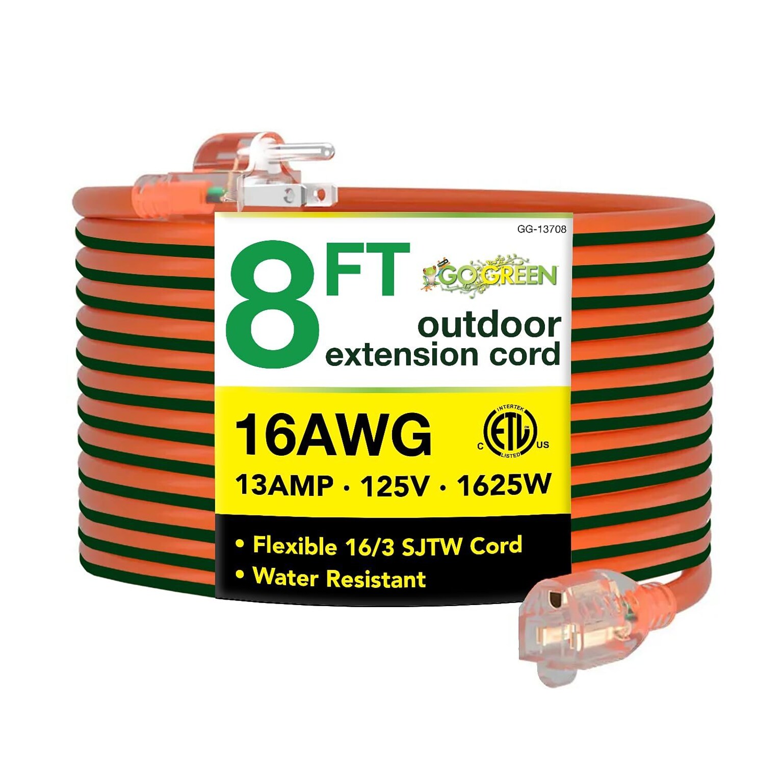 GoGreen Power 16/3 8' Heavy Duty Extension Cord, Lighted End, Orange (GG-13708)