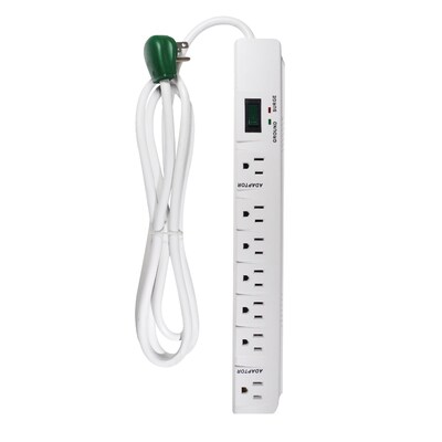 Staples TECH 6-Outlet Power Strip, 6' Cord, White, 3/Pack (42320)
