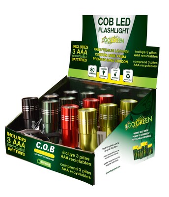 GoGreen Power COB LED Flashlight Display, Assorted Colors (GG-113-COBD12)