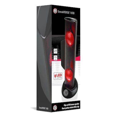 GOgroove SonaVERSE Clip-on USB-A Stereo Speaker with LEDs, Red (GGSVUSB200RDWS)