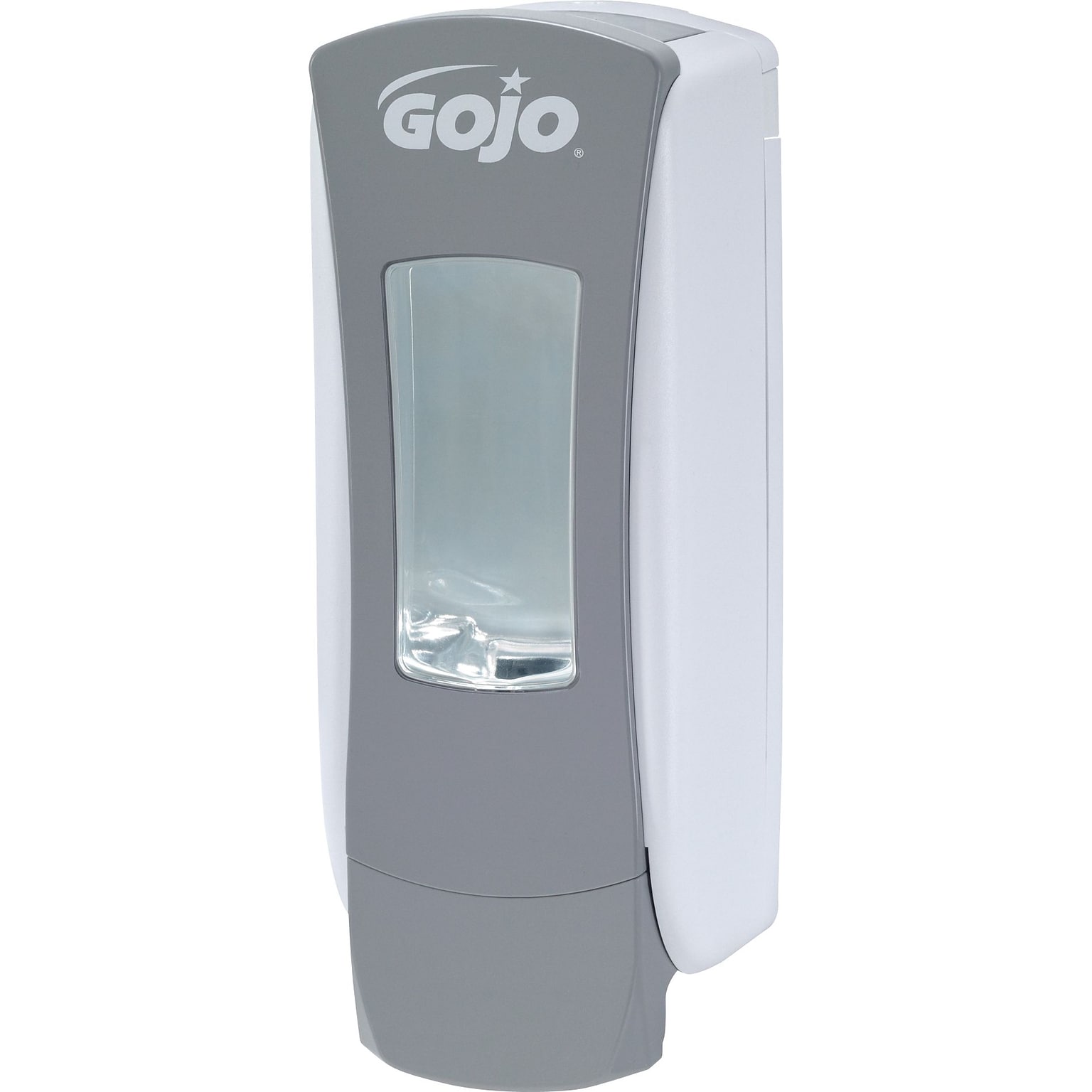 GOJO® ADX-12™ Grey/white dispenser controls portions of dispensed which reduces waste and locks for security and is ideal for high traffic areas.