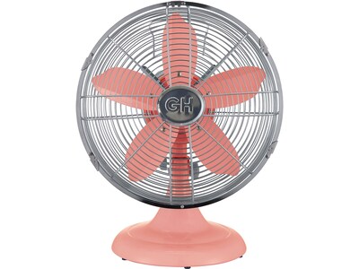 - Designed with a sleek retro aesthetic, this oscillating table fan in a salmon and silver-tone finish is great for bedrooms, offices, kitchens, and more