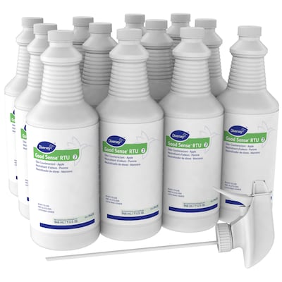 Get this carton of odor counteractants for a fresh-smelling space. The strong formula works quickly to neutralize malodors from mildew, urine, mold and vomit, and the green apple scent adds fragrance to the area. This Good Sense liquid refill odor counteractant comes as a concentrate and can be diluted depending on the strength of odors that need to be eliminated.