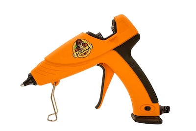 The Gorilla Dual Temp full-size glue gun is a great tool for crafts and home projects requiring more glue output and volume. The gun is lightweight, with a comfortable grip and a built-in stand making it easy to use. The easy-squeeze trigger and long insulated nozzle allow for precise application on any project.