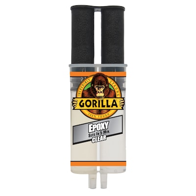 Gorilla takes epoxy to the Gorilla tough level. With its superior solvent and water resistance, Gorilla Epoxy adhesive is incredibly strong and durable for office, household and automotive repairs alike. The easy-to-use syringe keeps the epoxy resin and hardener separate, so it is easy to dispense. The two-part, gap-filling formula easily bonds steel, aluminum, glass, wood, ceramic, tile and most plastics. Plus, it dries in an ideal, clear finish that makes projects look spotless.
